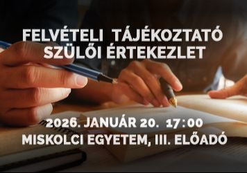 Kari szülői értekezlet - felvételivel kapcsolatos tájékoztató - 2026. január 20. 17:00 ME III. előadó2026. január 12.