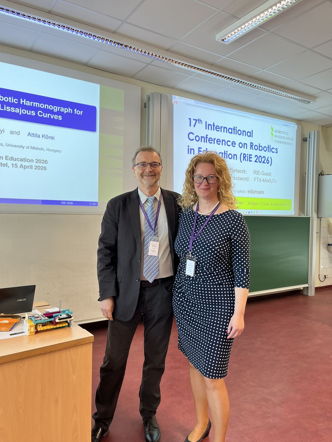2026. április 15-17. között Lengyelné Dr. Szilágyi Szilvia és Dr. Körei Attila a GÉIK Matematikai Intézetének oktatói részt vettek a németországi Wolfenbüttelben megrendezett 17. Robotics in Education (RiE 2026) konferencián. Közös előadásukban bemutatták saját fejlesztésű Lissajous göbéket rajzoló, LEGO elemekből épített oktatási robotjukat. A konferencián 25 országból több, mint 70 kutató vett részt.