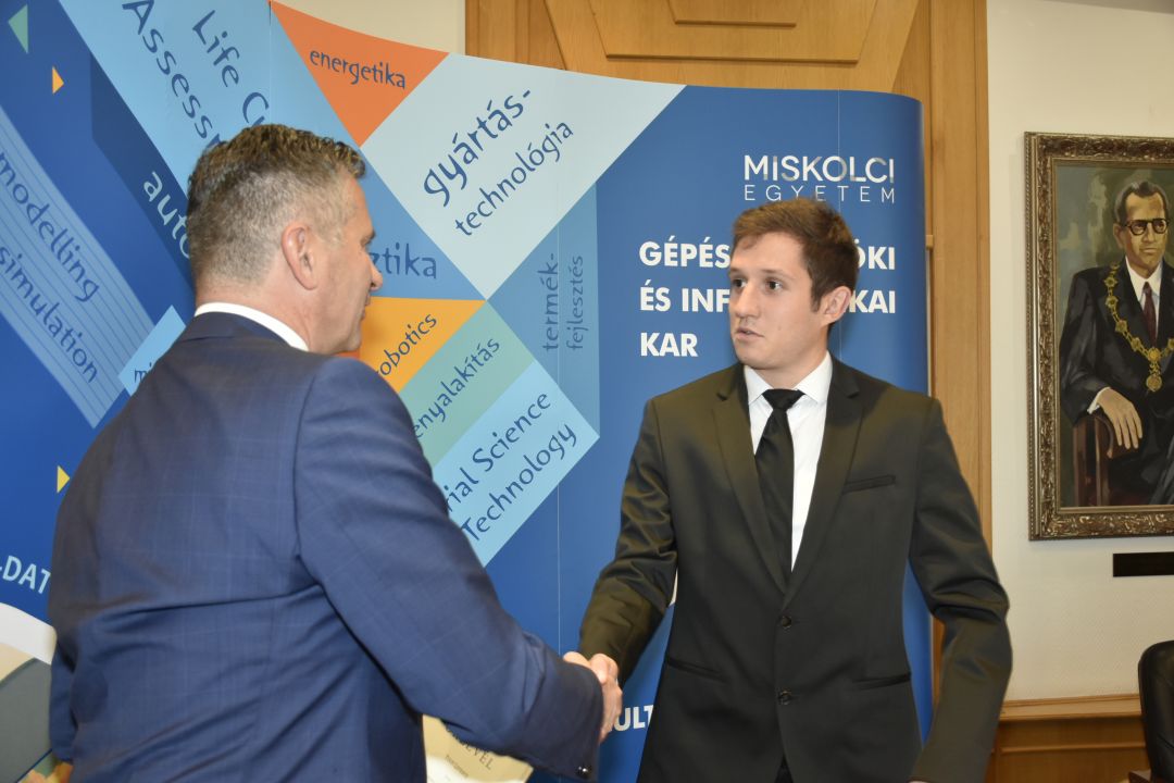 A miniszteri adományozó levelet Dr. Siménfalvi Zoltán, karunk dékánja adta át a 2019. november 26-i Kari Tanács ülés keretében jó tanuló hallgatóinknak: